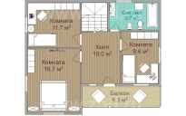 Небольшой по площади застройки, но отлично спроектированный дом располагает всеми помещениями для комфортной жизни и приема гостей. На первом этаже - просторная кухня-столовая, санузел и гостевая комната, которую можно при желании переоборудовать в кабинет. На втором этаже - три полноценных спальни с отдельным санузлом.